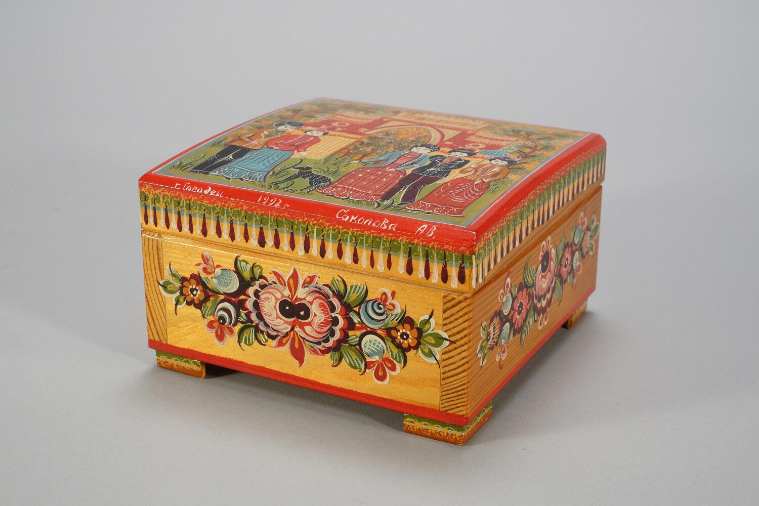 Александра Васильевна Соколова (род. 1947). Шкатулка с изображением гуляющих у Виноградных ворот -